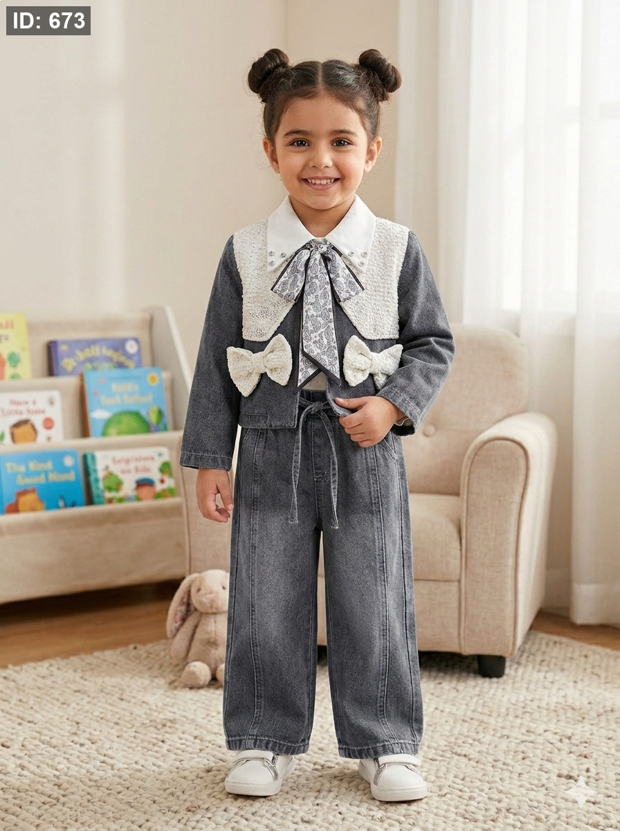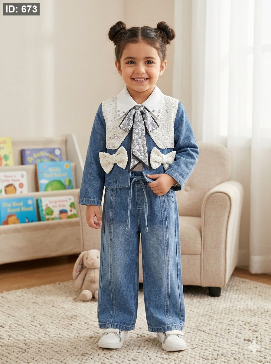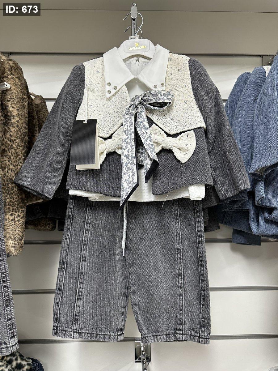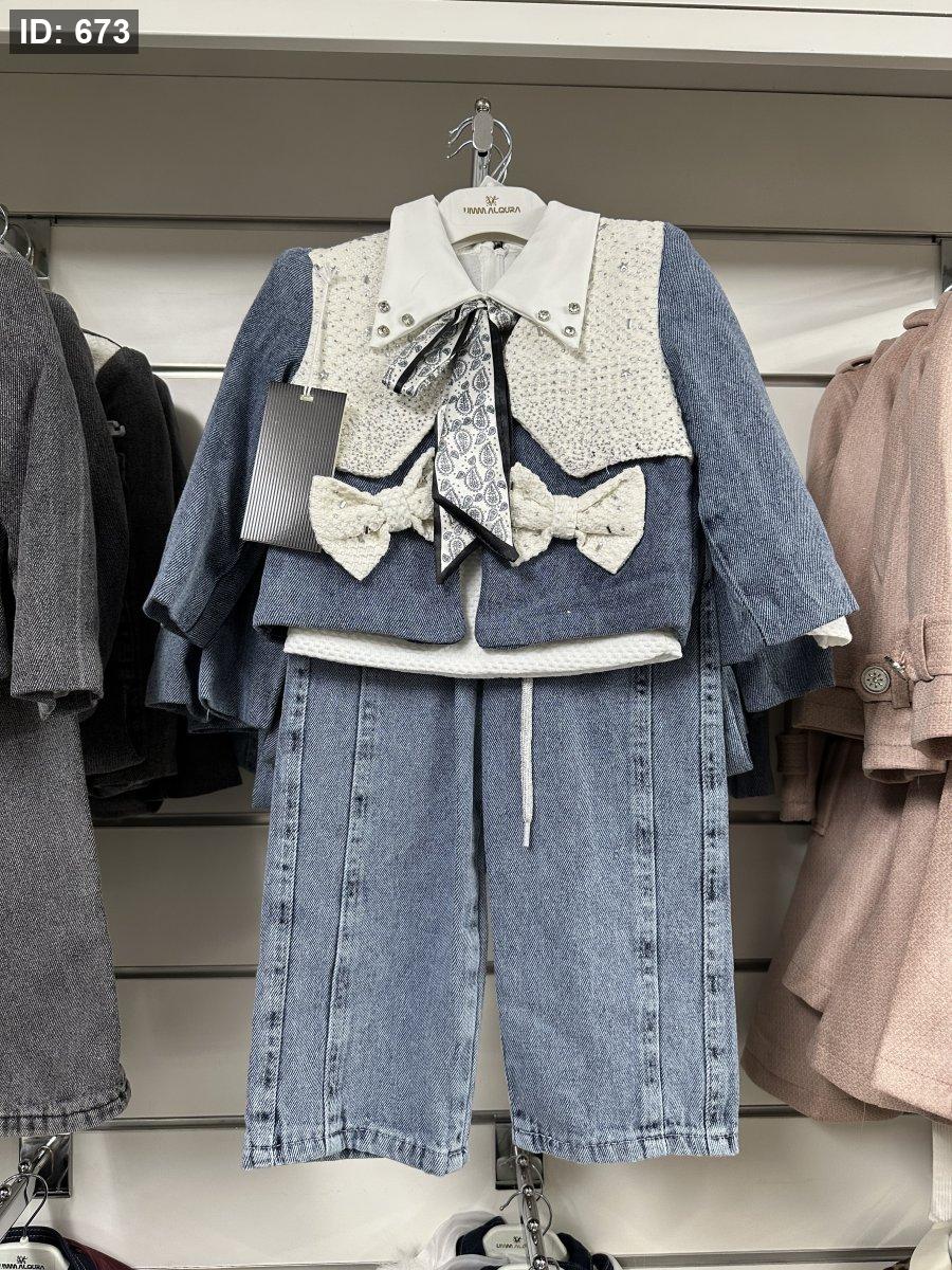 طقم جينز انيق بلبس من 3-11 سنة ثلاث قطع تقيل ومرتب👌🏻