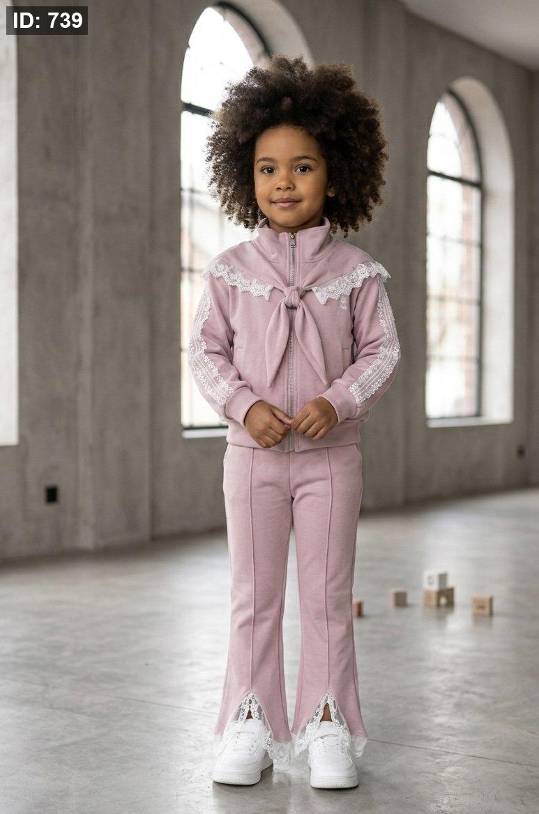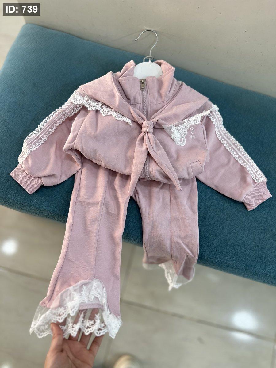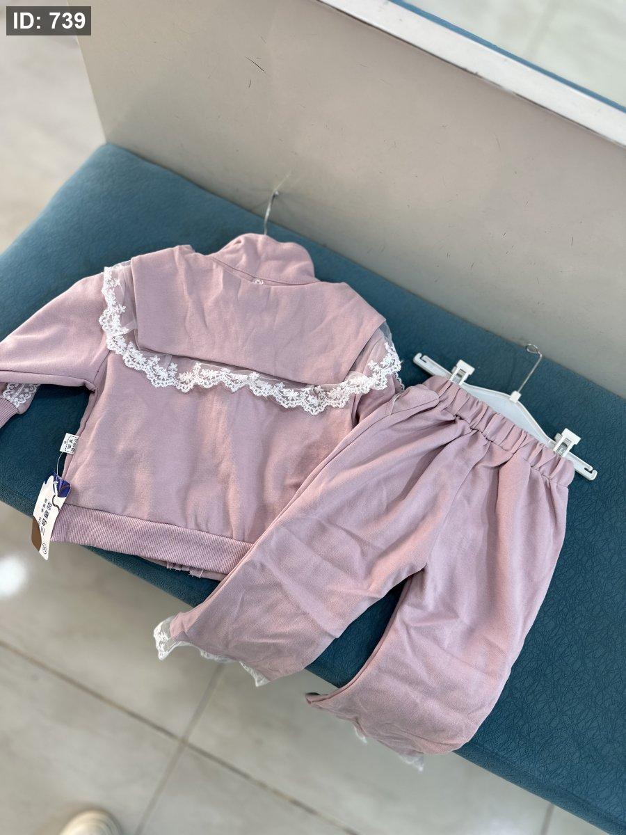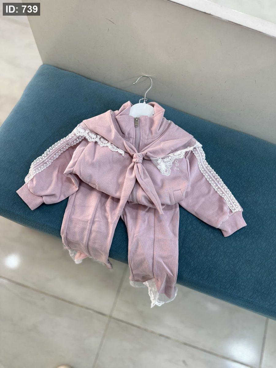تريننج ثلاث قطع، جكيت وسكارف وبنطلون قماش انيق مع دانتيل🥰